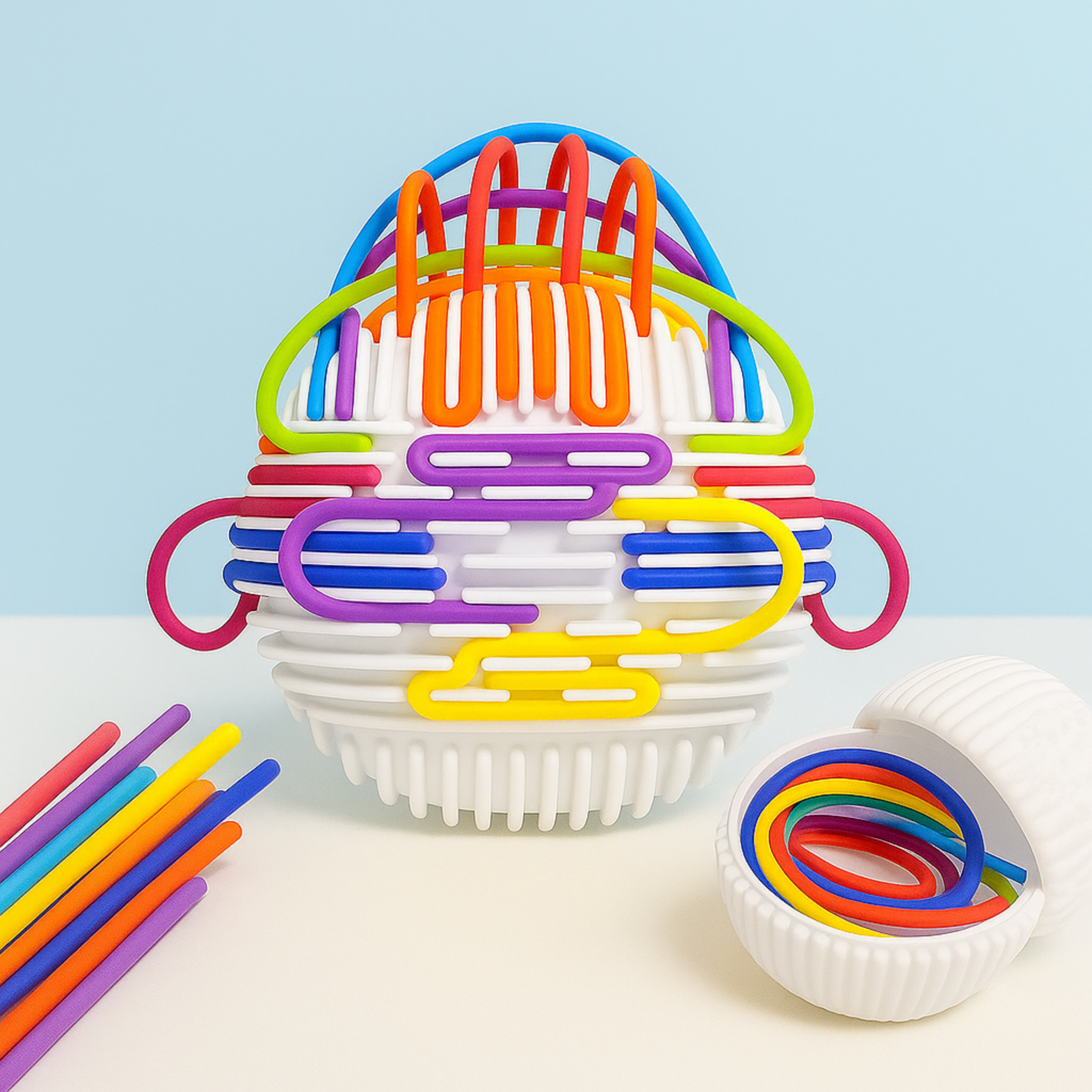 Discover creativity using fine motor skills for kids & young adults with our Silicone Sensory Fidget Ball designed to promote problem solving and increase exposure to different colors and patterns. Ideal for children and adults with Autism, ADHD and high anxiety, and those who love to have fun and create over and over!