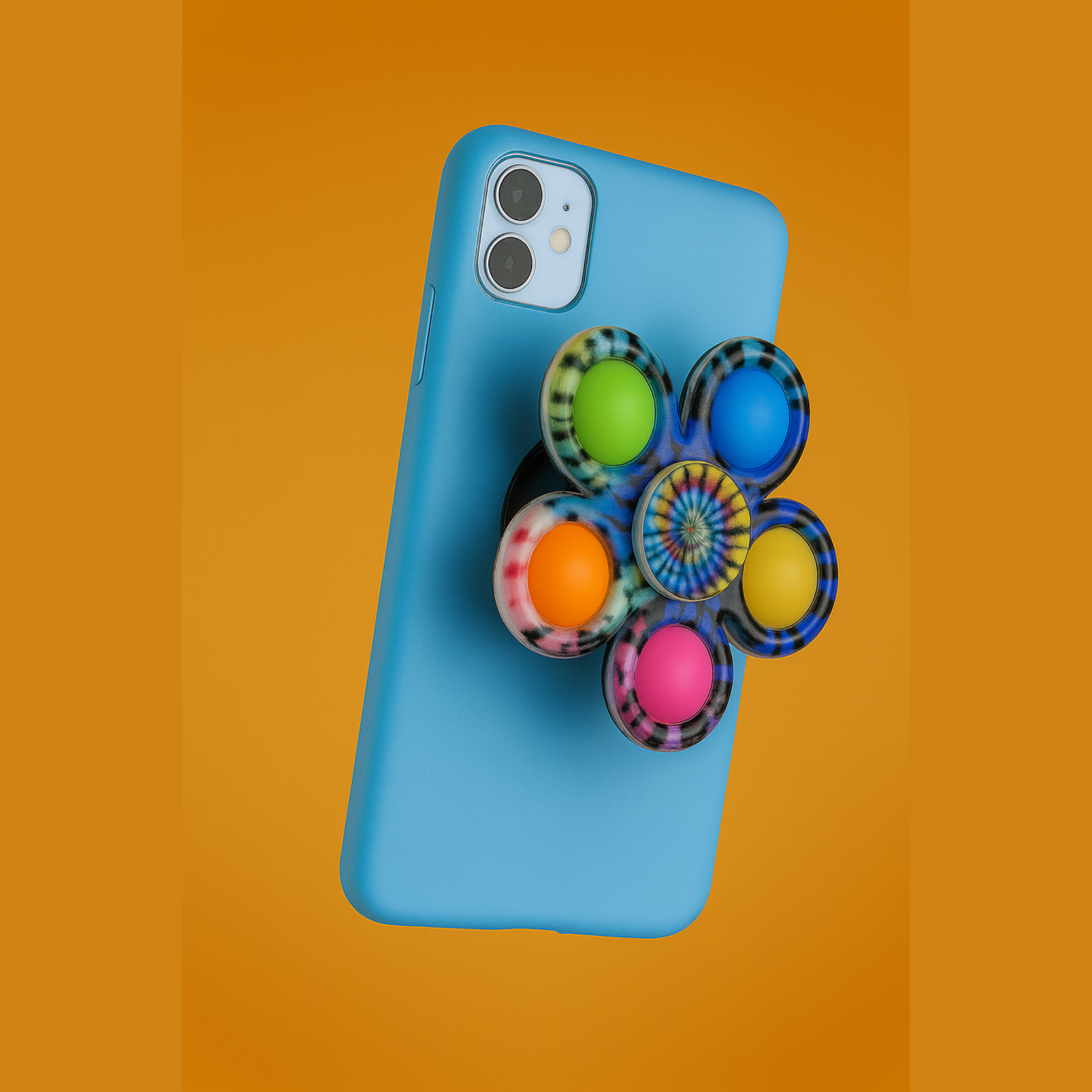 Say hello to Zinny's Spinner Stand – 3-in-1 Popper, Fidget Spinner & Phone Stand — a colourful sensory spinner that’s part fidget toy, part popper, and part phone stand all in one! Each spinner features soft silicone pop bubbles paired with a smooth fingertip gyroscope, creating the ultimate multi-sensory experience for stress relief, focus, and fun on the go. Pop it, spin it, fidget with it, or clip it to your phone to turn study breaks, travel time, or waiting rooms into calming sensory play. With vibrant tie-dye designs and durable silicone construction, the Zinny's Spinner Stand makes everyday moments brighter, calmer, and more enjoyable for kids and adults alike.
